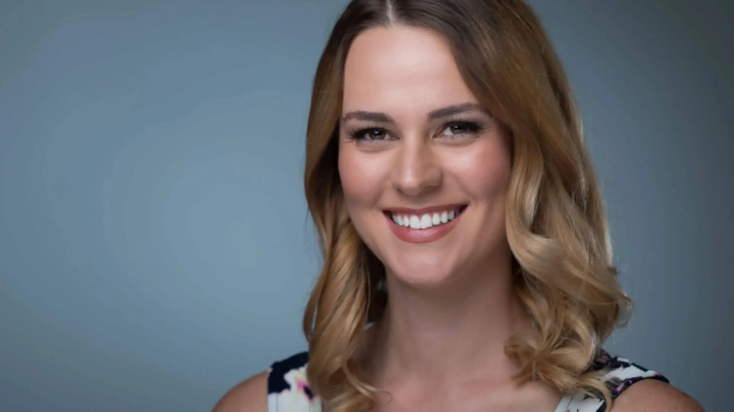 As you can see we have the beauty dish right in front on one side. Underneath her face, we have the white cardboard. In the back, notice we have a small hair light with a grid. This adds a nice touch to separate her from the background and I love how it adds a slight touch to her hair.